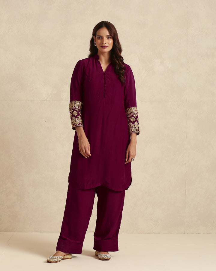 * Tailored from premium-quality fabric in a rich deep burgundy hue