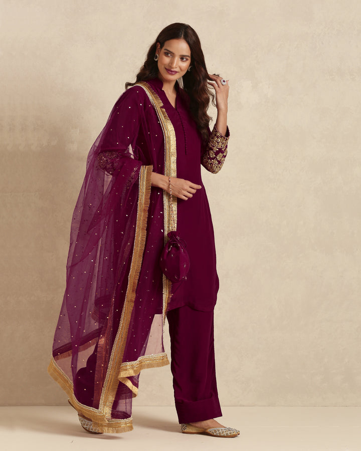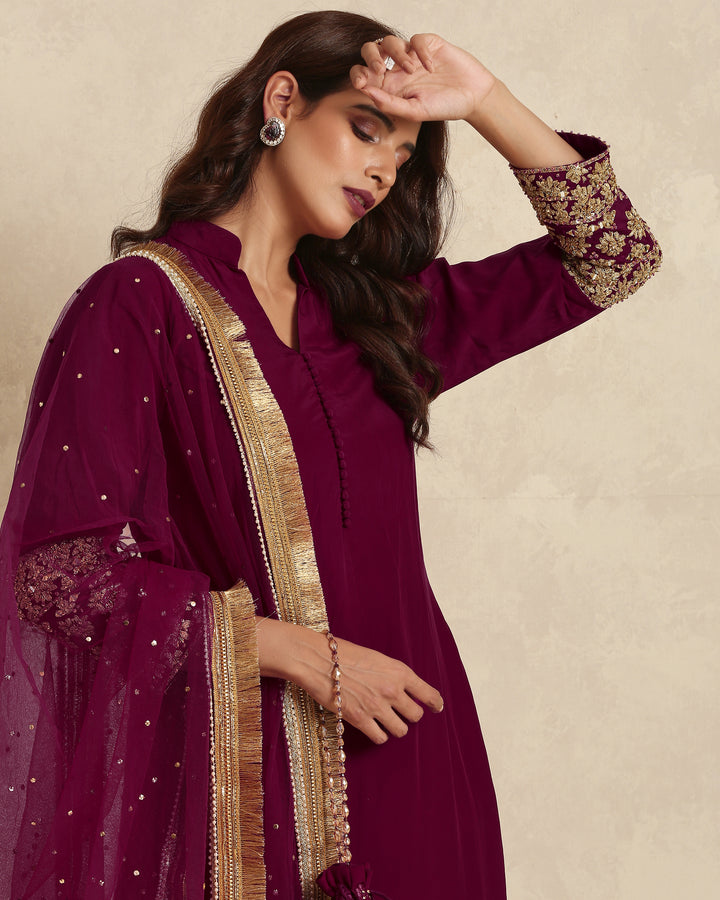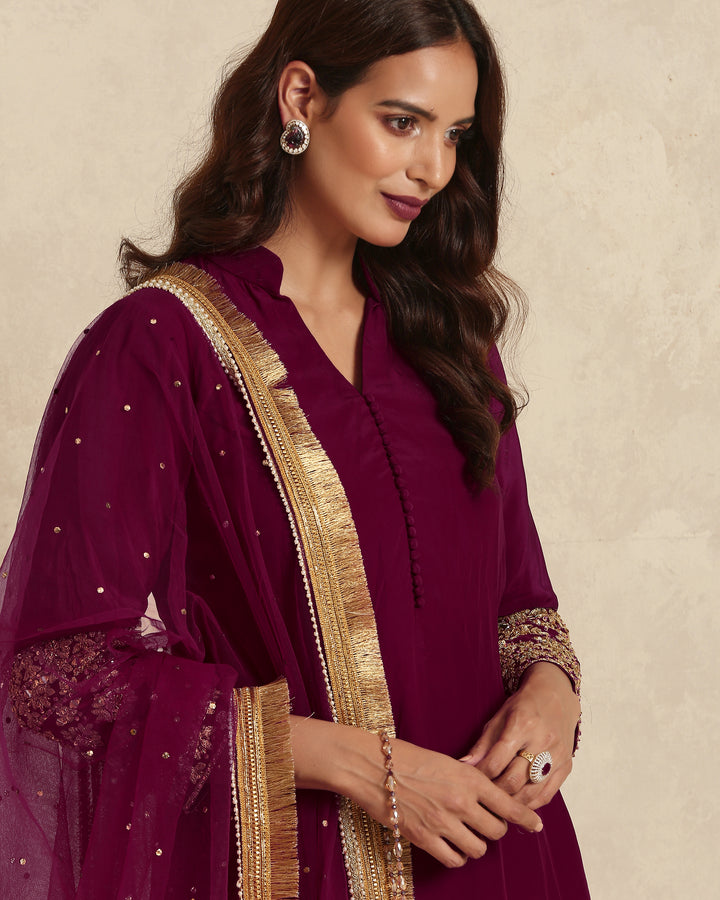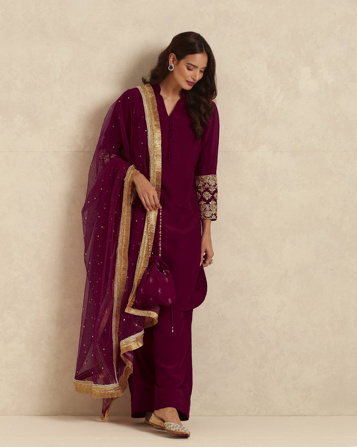 Radiate timeless charm with our stunning deep bugundy Pakistani suit that embodies regal sophistication and festive elegance. Crafted for those who adore traditional artistry with a touch of luxury, this ensemble is ideal for weddings, festive occasions, and formal gatherings.