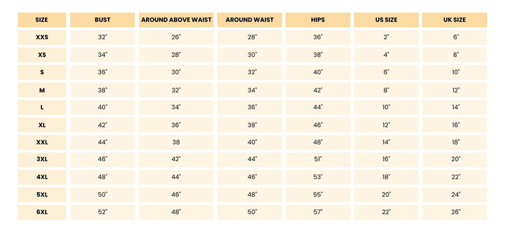 2XS, XS, S, M, L, XL, XXL, 3XL, 4XL, 5XL, 6XL, Custom Size |